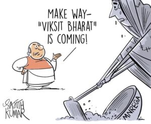ಜನರ ಹಕ್ಕುಗಳ ರದ್ದತಿ, ಚೂರು ಪಾರು ಕೊಡುಗೆಗಳಿಗೆ “ನಾಯಕ”ನಿಗೆ ಸದಾ ಋಣಿಯಾಗಬೇಕಿರುವ ಜನರನ್ನು ಭಿಕ್ಷುಕ ಮಟ್ಟಕ್ಕೆ ಇಳಿಸುವುದು ಮತ್ತು ಪ್ರಜಾಪ್ರಭುತ್ವ ವ್ಯವಸ್ಥೆಯನ್ನು ಫ್ಯಾಸಿಸ್ಟ್ ತೆರನ ಸರ್ವಾಧಿಕಾರದತ್ತ ಹೊರಳಿಸುವ ಪರಿವರ್ತನೆಯನ್ನು ಸುಗಮಗೊಳಿಸುವ ಸಲುವಾಗಿ ಒಂದು ಸಾಂವಿಧಾನಿಕ ವ್ಯವಸ್ಥೆಯನ್ನು ಹಾಳುಗೆಡುವುದು, ಹೀಗೆ ಇವೆಲ್ಲವೂ ಒಂದು ಸಮಗ್ರ ಪ್ರಕ್ರಿಯೆಯ ಅವಿಭಾಜ್ಯ ಅಂಶವಾಗುತ್ತವೆ. ಈ ಪರಿವರ್ತನೆಯನ್ನು ಜಾರಿಗೆ ತರುವಲ್ಲಿ ಒಂದು ಅಸಾಮಾನ್ಯ ಯೋಜನೆಯಾಗಿದ್ದ ಮತ್ತು ಇಡೀ ವಿಶ್ವದ ಅತಿ ದೊಡ್ಡ ಉದ್ಯೋಗ ಕಾರ್ಯಕ್ರಮವಾಗಿದ್ದ ಮಹಾತ್ಮ ಗಾಂಧಿ ರಾಷ್ಟ್ರೀಯ ಗ್ರಾಮೀಣ ಉದ್ಯೋಗ ಖಾತ್ರಿ ಯೋಜನೆಯನ್ನು ಧ್ವಂಸಗೊಳಿಸುವುದು ಒಂದು ದೊಡ್ಡ ಹೆಜ್ಜೆಯಾಗಿದೆ.