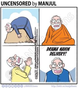 ಪ್ರಧಾನಿಗಳು ಡ್ರಾಮಾ ಎಂದಾಗ ನಮ್ಮ ಪ್ರಖ್ಯಾತ ವ್ಯಂಗ್ಯ ಚಿತ್ರಕಾರರಿಗಂತೂ ನೆನಪಾದದ್ದು ಕಳೆದ 12 ವರ್ಷಗಳ ವಿವಿಧ ಡ್ರಾಮಾಗಳೇ. ಪ್ರಧಾನಿಗಳೂ ಸೇರಿದಂತೆ ಆಳುವ ಮಂದಿ ಬಹುಶಃ ನೆನಪಿಸಿಕೊಳ್ಳಲೂ ಅಳುಕುವ ನೋಟುರದ್ಧತಿ ಮತ್ತು ಲಾಕ್‌ಡೌನ್ ಒತ್ತಟ್ಟಿಗಿರಲಿ, ಈಗ ಡಾಲರಿಗೆ ಎದುರಾಗಿ ರೂಪಾಯಿ ಬೆಲೆ ಪ್ರತಿದಿನ ಎಂಬಂತೆ ಹೊಸ-ಹೊಸ ದಾಖಲೆಗಳನ್ನು ಸೃಷ್ಟಿಸುತ್ತಿರುವಾಗಲೂ ಪ್ರಧಾನಿಗಳ ಈ ಡ್ರಾಮಾ ಮತ್ತು ಡೆಲಿವರಿಯ ಉದ್ಗಾರಗಳು ಅಕ್ಷರಶಃ ‘ಸಾರ್ಥಕ’ವಾಗುತ್ತಿವೆ!