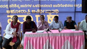 ಬೆಂಗಳೂರು: ಕಳೆದ 30 ವರ್ಷಗಳ ಪರಿಶಿಷ್ಟ ಜಾತಿಗಳ ಸಾಂವಿಧಾನಿಕ ಹಕ್ಕುಗಳಿಗಾಗಿ ಆಗ್ರಹಿಸಿ ಅಂದು ಪ್ರೊ ಬಿ. ಕೃಷ್ಣಪ್ಪನವರು ಹೋರಾಟ ಆರಂಭಿಸಿದ್ದರು. ಅಂದಿನಿಂದ ಇಂದಿನವರೆಗೆ ಒಳಮೀಸಲಾತಿಗಾಗಿ ಆಗ್ರಹಿಸಿ ಹೋರಾಟ ನಡೆಸಿದ ಎಲ್ಲಾ ಹೋರಾಟಗಾರರು ಇಂದಿನ ಸನ್ನಿವೇಶದಲ್ಲಿ 11 ಆಗಸ್ಟ್ ರಂದು ಬೆಂಗಳೂರಿನ ಫ್ರೀಡಂ ಪಾರ್ಕ್ನಲ್ಲಿ ನಡೆಯುತ್ತಿರುವ ಅನಿರ್ಧಿಷ್ಟಾವಧಿ ಆಹೋರಾತ್ರಿ ಸತ್ಯಾಗ್ರಹದಲ್ಲಿ ಪಾಲುದಾರರಾಗಿದ್ದಾರೆ.