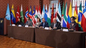 “ಹೇಗ್ ಗುಂಪು” ಅಂತರರಾಷ್ಟ್ರೀಯ ಕಾನೂನಿನ ರಕ್ಷಣೆ ಮತ್ತು ಪ್ಯಾಲೆಸ್ಟೈನ್ ಜನರಿಗೆ ಸೌಹಾರ್ದ ಬೆಂಬಲ ನೀಡುವ ಕಾನೂನು ಮತ್ತು ರಾಜತಾಂತ್ರಿಕ ಕ್ರಮಗಳನ್ನು ಸಂಘಟಿಸಲು ಬದ್ಧವಾಗಿರುವ ದೇಶಗಳ ಜಾಗತಿಕ ಗುಂಪಾಗಿದೆ. ಈ ಸಭೆಯನ್ನು “ಹೇಗ್ ಗುಂಪು” ಕೊಲಂಬಿಯ ಮತ್ತು ದಕ್ಷಿಣ ಆಫ್ರಿಕಾದ ಸರಕಾರಗಳ ಸಹಕಾರದೊಂದಿಗೆ ಸಂಘಟಿಸಿದ್ದು, ಜನವರಿ 2025ರಲ್ಲಿ ಸ್ಥಾಪಿಸಲಾದ ಹೇಗ್ ಗುಂಪಿನ ಸದಸ್ಯ ದೇಶಗಳು ಸೇರಿದಂತೆ ಹಲವು (ಪ್ರಮುಖವಾಗಿ ಜಾಗತಿಕ ದಕ್ಷಿಣ ಅಂದರೆ ಅಭಿವೃದ್ಧಿಶೀಲ ) ದೇಶಗಳನ್ನು ಆಹ್ವಾನಿಸಲಾಗಿತ್ತು.