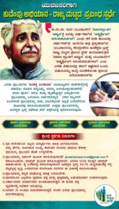 ಕು.ವೆಂ.ಪು. ರವರ ಯುವಜನರಿಗೆ ‘ವಿಚಾರಕ್ರಾಂತಿಗೆ ಆಹ್ವಾನ’ ಕ್ಕೆ ಐವತ್ತು ವರ್ಷಗಳಾಗಿವೆ. ‘ಆತ್ಮಶ್ರೀಗಾಗಿ ನಿರಂಕುಶಮತಿಗಳಾಗಿ’ ಎಂದು ಕರೆ ನೀಡಿ ತೊಂಬತ್ತು ವರ್ಷಗಳಾಗಿವೆ. ಇಂದಿಗೂ ಅವು ಪ್ರಸ್ತುತವಾಗಿವೆ. ‘ವಿಚಾರಕ್ರಾಂತಿಗೆ ಆಹ್ವಾನ’ ಮತ್ತು ಯುವಜನರಿಗೆ ‘ಆತ್ಮಶ್ರೀಗಾಗಿ ನಿರಂಕುಶಮತಿಗಳಾಗಿ’ ಎಂಬ ಎರಡು ವಿಷಯದಲ್ಲಿ ತಮಗೆ ಇಷ್ಟವಾದ ಒಂದು ವಿಷಯವನ್ನು ಆಯ್ಕೆ ಮಾಡಿಕೊಂಡು ಪ್ರಬಂಧ ಬರೆಯಬಹುದಾಗಿದೆ ಎಂದು ಆಯೋಜಕರು ತಿಳಿಸಿದ್ದಾರೆ.