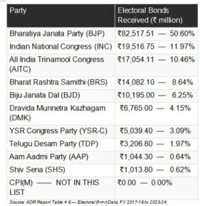 ಈ ಹಿನ್ನೆಲೆಯಲ್ಲಿ ‘ಎಲೆಕ್ಷನ್ ಬಾಂಡ್’ ಯೋಜನೆ ಪ್ರಮುಖ ಪಾತ್ರವಹಿಸಿದೆ. ಬ್ಯಾಂಕ್ಗಳ ಮೂಲಕ ಖರೀದಿಸಬಹುದಾದ ಈ ಬಾಂಡ್ಗಳ ಮೂಲಕ ಕಂಪನಿಗಳು ಹಾಗೂ ವ್ಯಕ್ತಿಗಳು ತಮ್ಮ ಗುರುತನ್ನು ಬಹಿರಂಗಪಡಿಸದೇ ರಾಜಕೀಯ ಪಕ್ಷಗಳಿಗೆ ದೇಣಿಗೆ ನೀಡಲು ಅವಕಾಶವಿತ್ತು. ಇದರಿಂದ ಭಾರೀ ಮೊತ್ತದ ಹಣ ರಾಜಕೀಯಕ್ಕೆ ಹರಿದರೂ, ಅದರ ಮೂಲದ ಪಾರದರ್ಶಕತೆ ಕುರಿತು ಪ್ರಶ್ನೆಗಳು ಎದ್ದಿವೆ. ಬಿಜೆಪಿ ಮತ್ತು ಟಿಎಂಸಿ ಮುಂತಾದ ದೊಡ್ಡ ಪಕ್ಷಗಳು ಈ ವ್ಯವಸ್ಥೆಯಿಂದ ಹೆಚ್ಚು ಲಾಭ ಪಡೆದಿವೆ ಎಂಬ ಆರೋಪಗಳು ಕೇಳಿಬಂದಿವೆ.