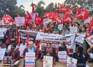 ಬೆಂಗಳೂರಿನ ಫ್ರೀಡಂ ಪಾರ್ಕ್ನಲ್ಲಿ ಇಂದು ಸಿಪಿಐ, ಸಿಪಿಐ(ಎಂ), ಸಿಪಿಐ(ಎಂ.ಎಲ್-ಲಿಬರೇಶನ್), ಎಸ್.ಯು.ಸಿ.ಐ(ಸಿ), ಎಐಎಫ್ಬಿಯ ಪಕ್ಷದ ನೂರಾರು ಕಾರ್ಯಕರ್ತರು ಪ್ರತಿಭಟನೆಯಲ್ಲಿ ಭಾಗವಹಿಸಿ ವೆನೆಜುವೆಲಾ ಜೊತೆ ನಾವಿದ್ದೇವೆ ಎಂದು ಘೋಷಣೆ ಮೊಳಗಿಸಿದರು.