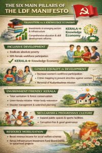 ಎಲ್ಡಿಎಫ್ ಪ್ರಣಾಳಿಕೆಯನ್ನು ಆರು ಪ್ರಮುಖ ಸ್ತಂಭಗಳ ಮೇಲೆ ನಿರ್ಮಿಸಲಾಗಿದೆ: