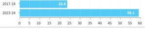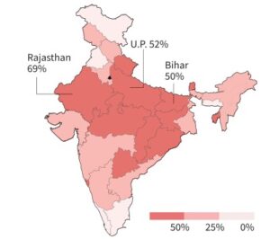 ನಕಾಶೆ 2- ವೇತನವಿಲ್ಲದೆ ಕೃಷಿಯಲ್ಲಿ ತೊಡಗಿರುವ ಮಹಿಳೆಯರ ಪ್ರಮಾಣ (ಶೇಕಡವಾರು) -PLFS ಸಮೀಕ್ಷೆಯ ಪ್ರಕಾರ(ಶೇ.)
